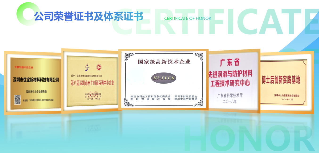 Continuous innovation has enabled EUBO New Material to hold numerous independent intellectual property rights, earning recognition as a national-level high-tech enterprise, one of China’s Top 100 Innovative SMEs, and one of Shenzhen’s Top 100 Self-Innovative Enterprises. Its technological achievements are widely applied across multiple industries.